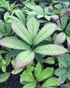 Weiße Blüten in einem rispigen Blütenstand. Dieser ist leicht geneigt. Stängel und Blattnerven sind deutlich braunrot. Gefiederte Blätter. Der rotstängelige Samenstand ist lange zierend. Sommergrün.