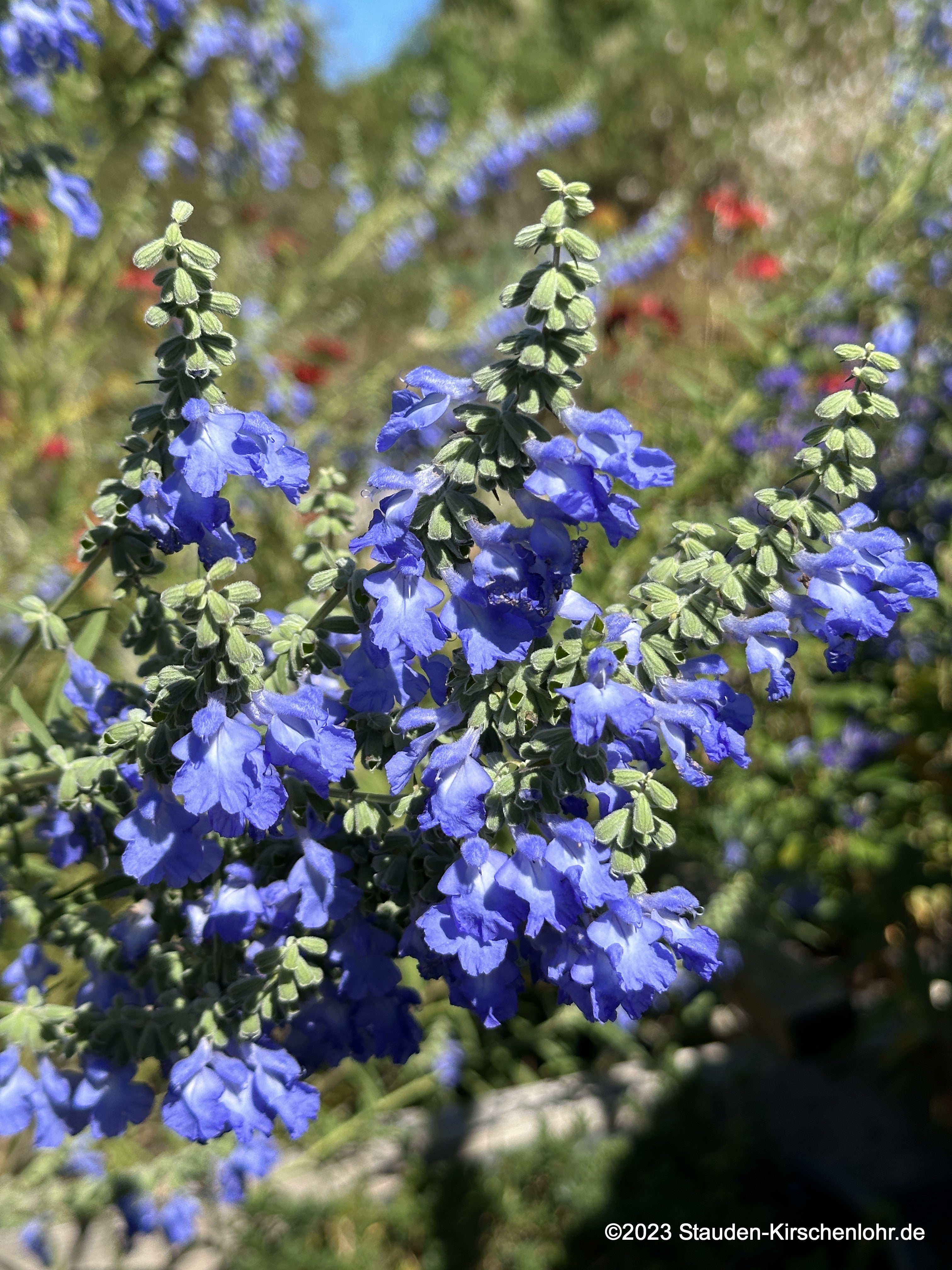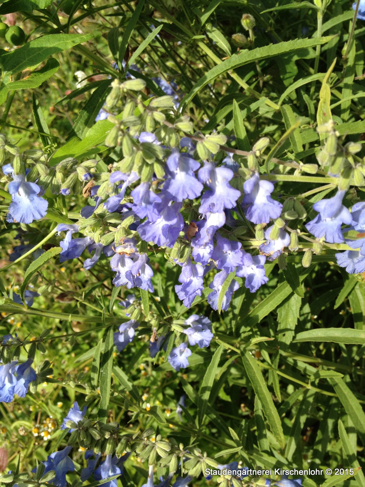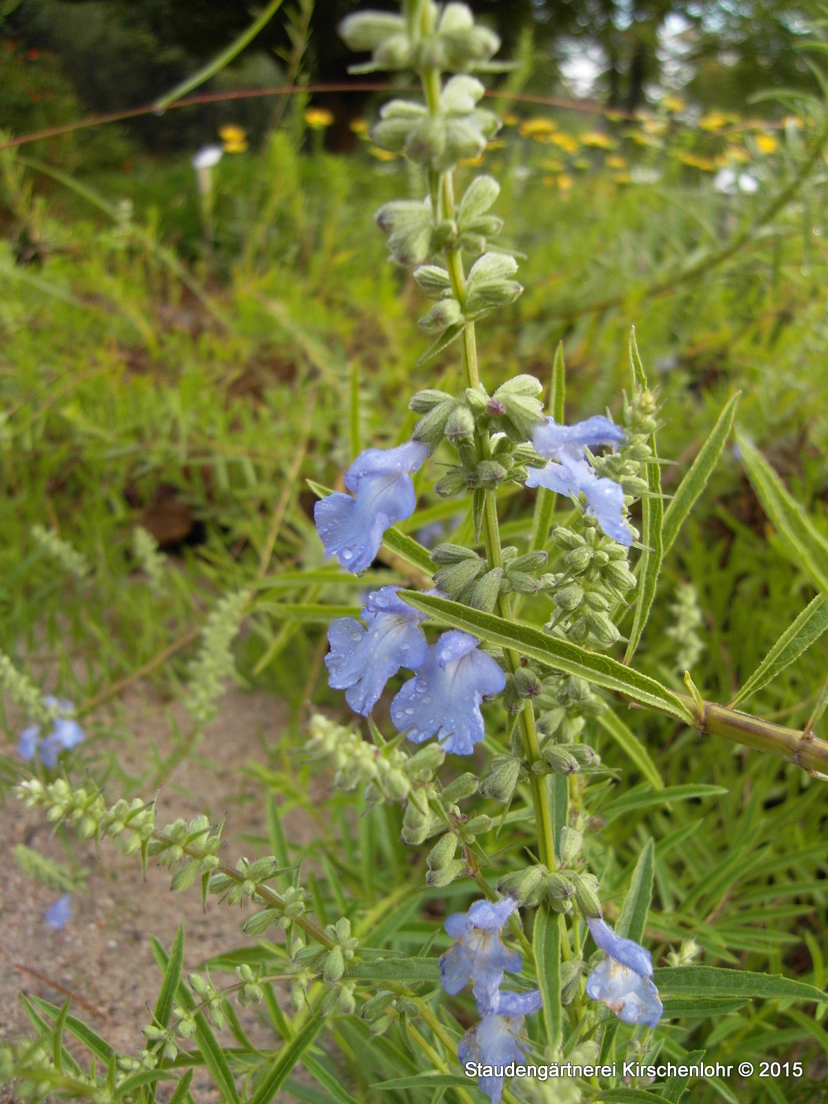 Blätter etwas flaumig behaart. Stängel oben verzweigt, nicht unbedingt standfest. Ähriger Blütenstand, endständig und in den oberen Blattachseln. Reinblauer Spätblüher; wirkungsvolle Farbe. Sommergrün.