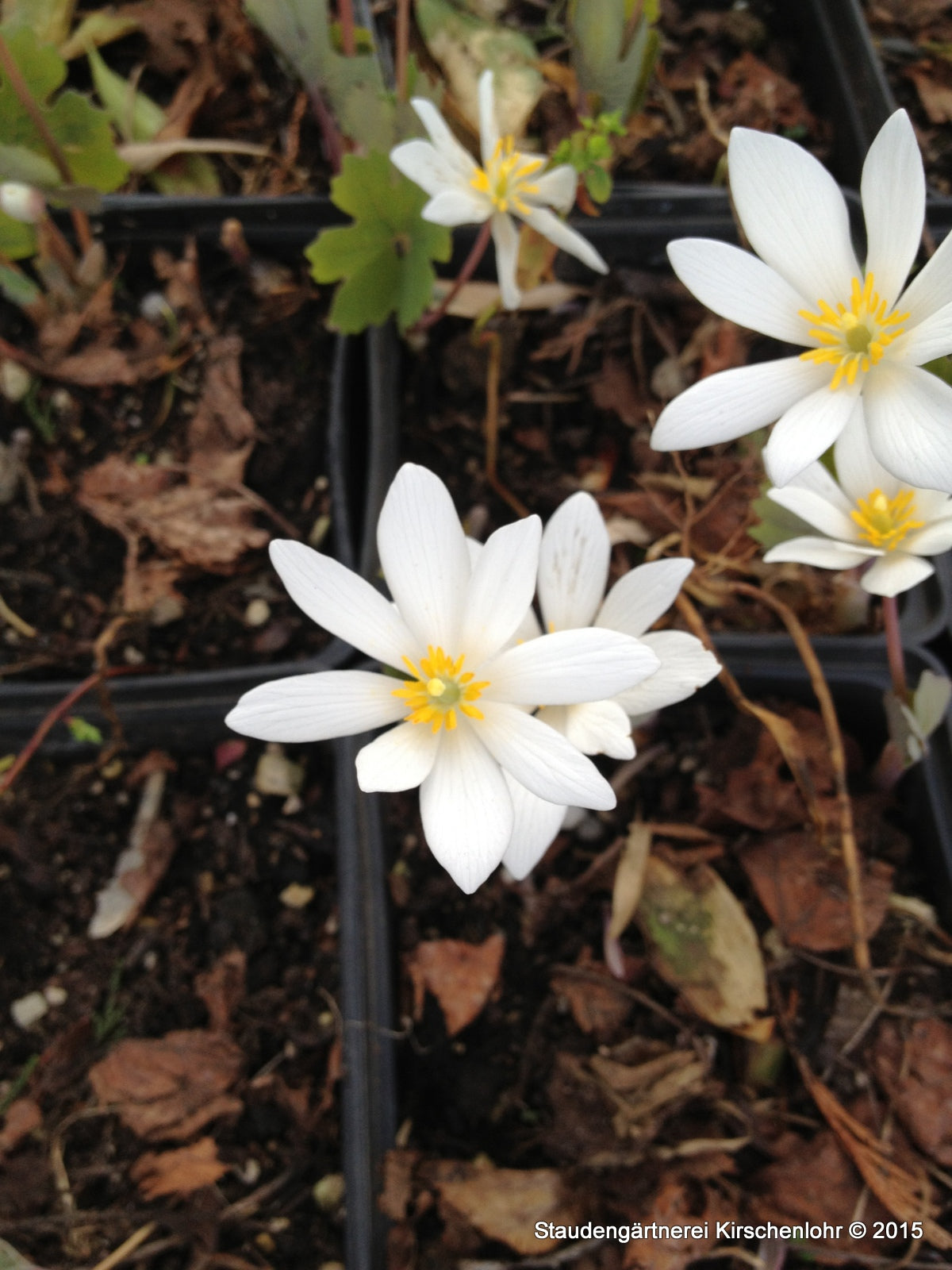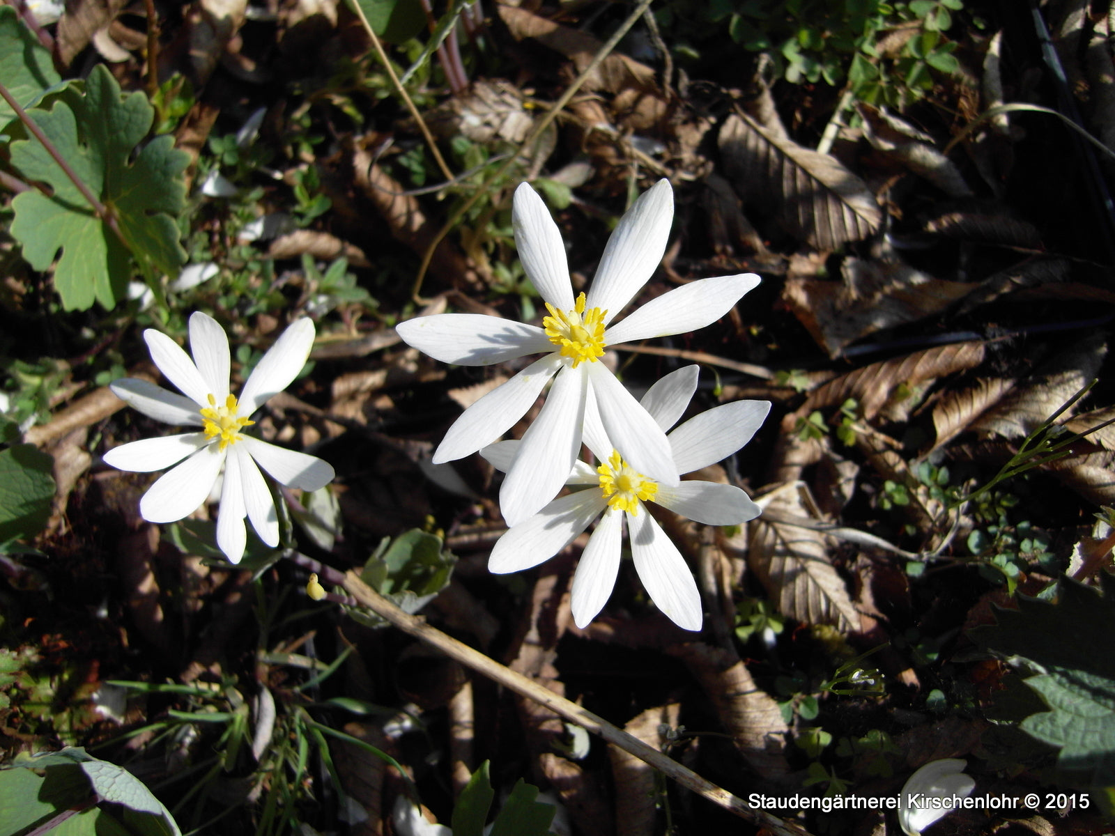 Gestielte Blüten mit reinweißen Strahlenblüten. Buchtige, gelappte, blaugrüne Blättern. Die Blätter ziehen im Laufe des Sommers ein. Besondere Waldstaude mit fleischigem Rhizom. Bei Verletzung tritt roter Saft aus.