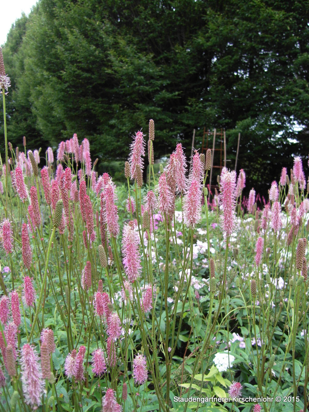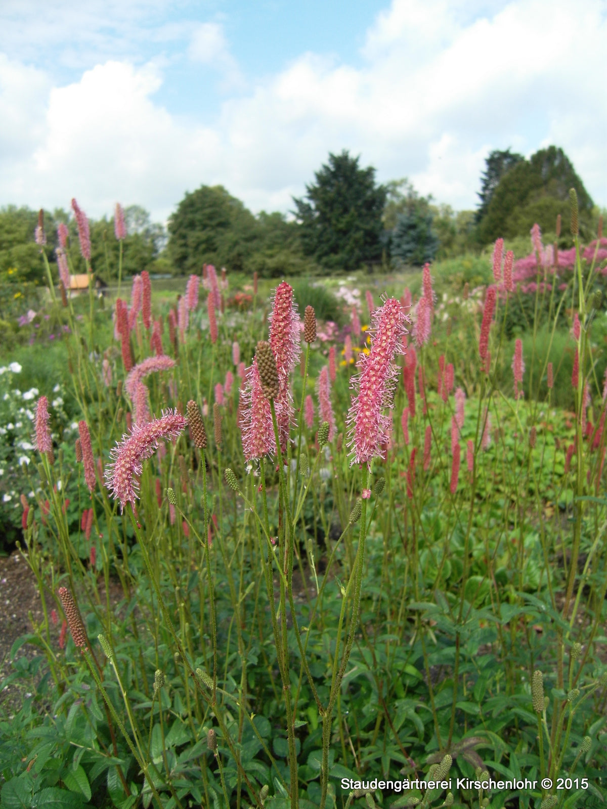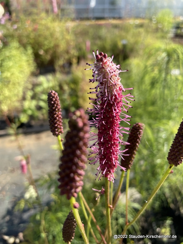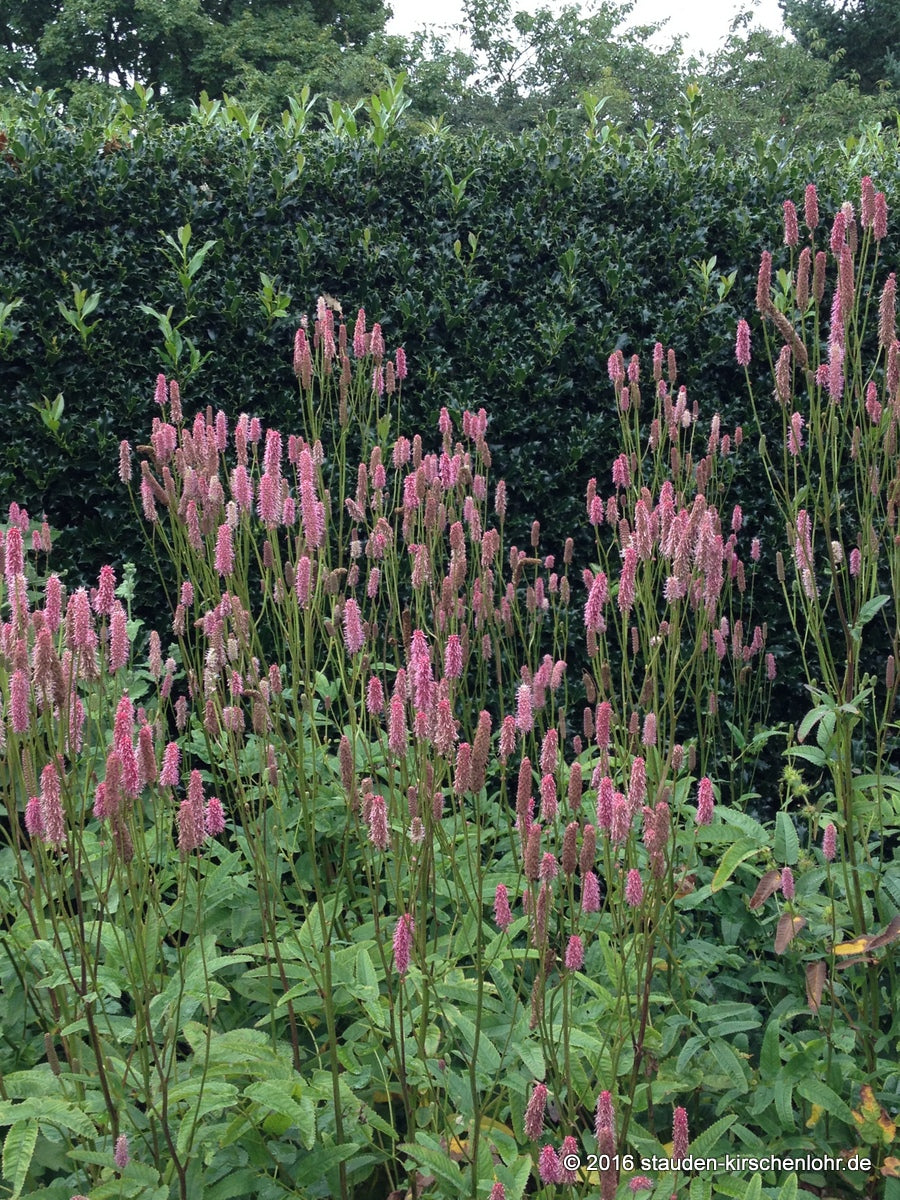 Himbeerrosa Blüten in endständigen, aufrechten Ähren an straff aufrechten Stängeln. Die grünen Blätter sind unpaarig gefiedert. Sommergrün. Nicht identisch mit S. 'Purple Candles', welche höher wird und dunkler in der Blütenfarbe ist!