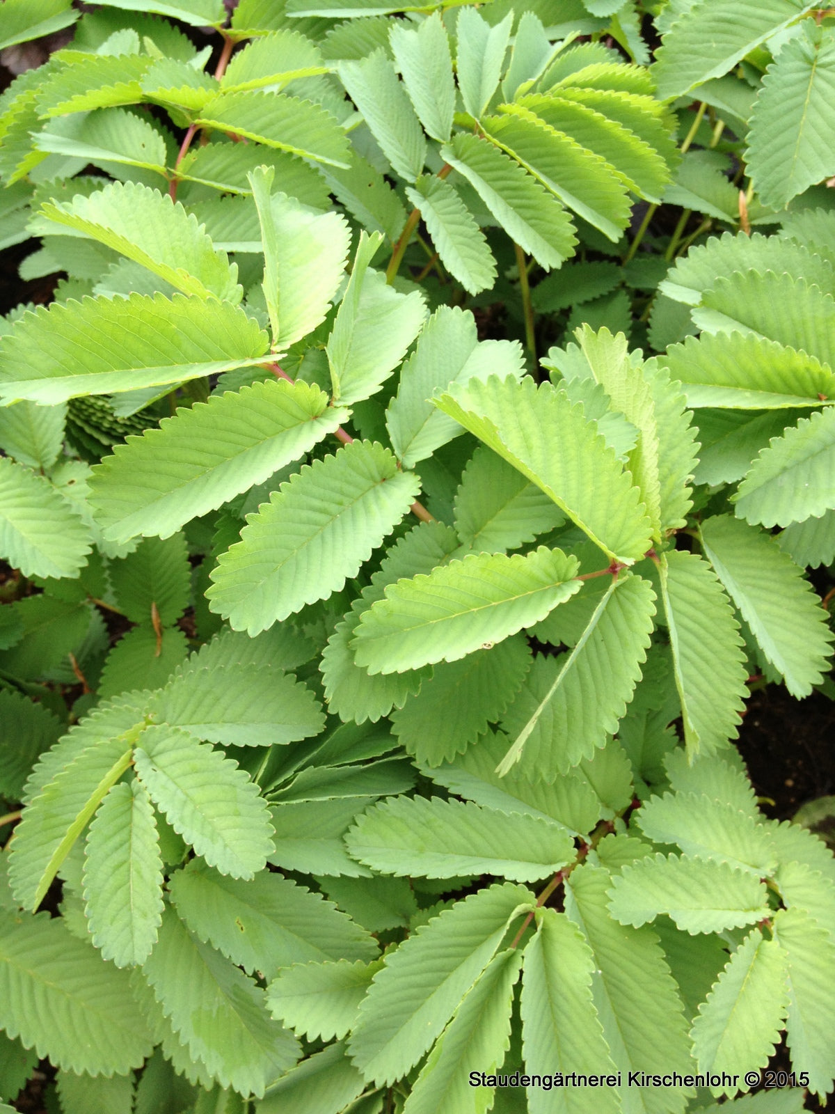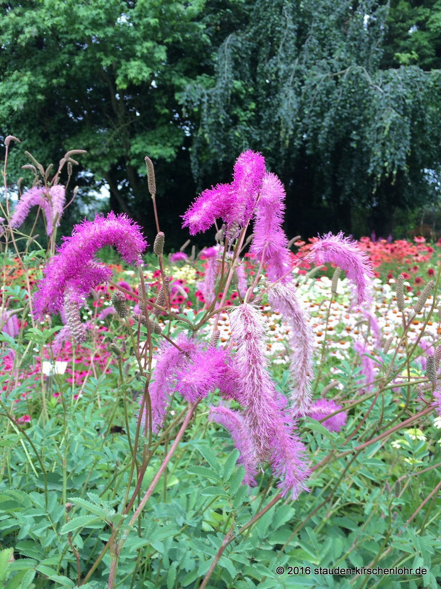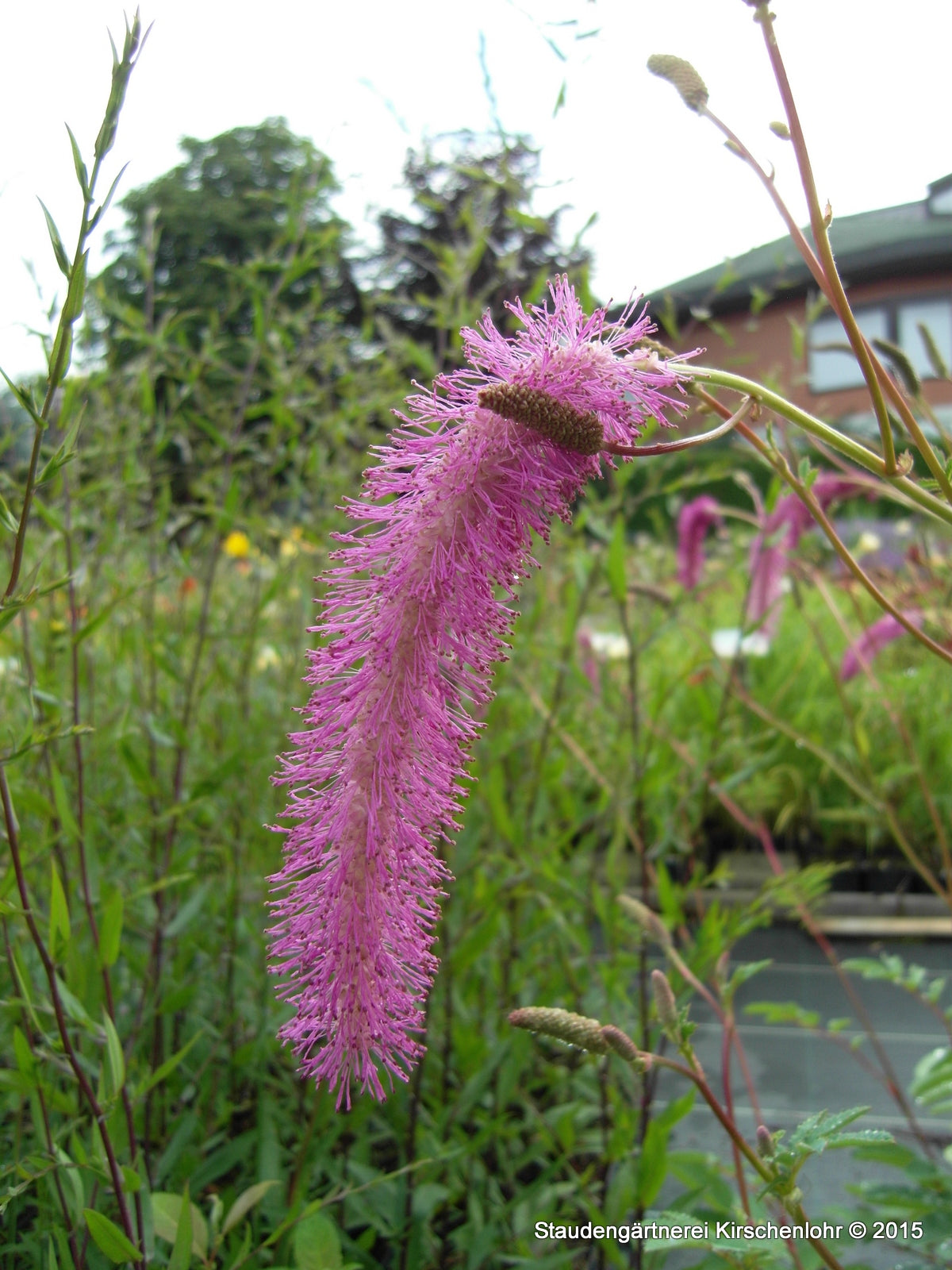 Kräftig lilarosa Blüten in endständigen, nickenden bis hängende Ähren an straff aufrechten Stängeln. Die blaugrünen Blätter sind groß und unpaarig gefiedert. Sommergrün. Höchst wirkungsvoll.