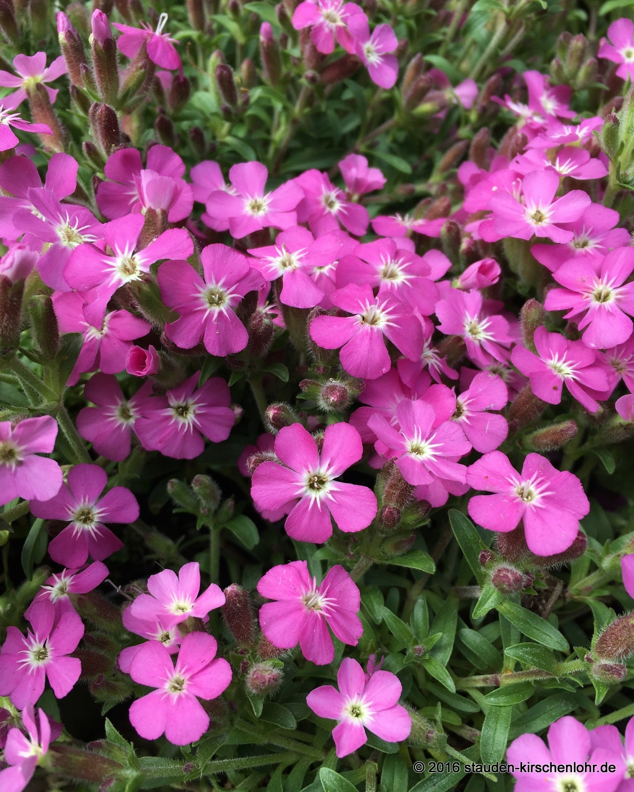 Sternförmige, leuchtend tiefrosa Blüten. Bildet schöne, kompakte, dichte mit Blüten übersäte Polster. Farblich sehr schön und wirkungsvoll. Die Blüten sind steril. Dunkelgrüne, lineallanzettliche Blätter. Wintergrün. (S. pumila x S. caespitosa)