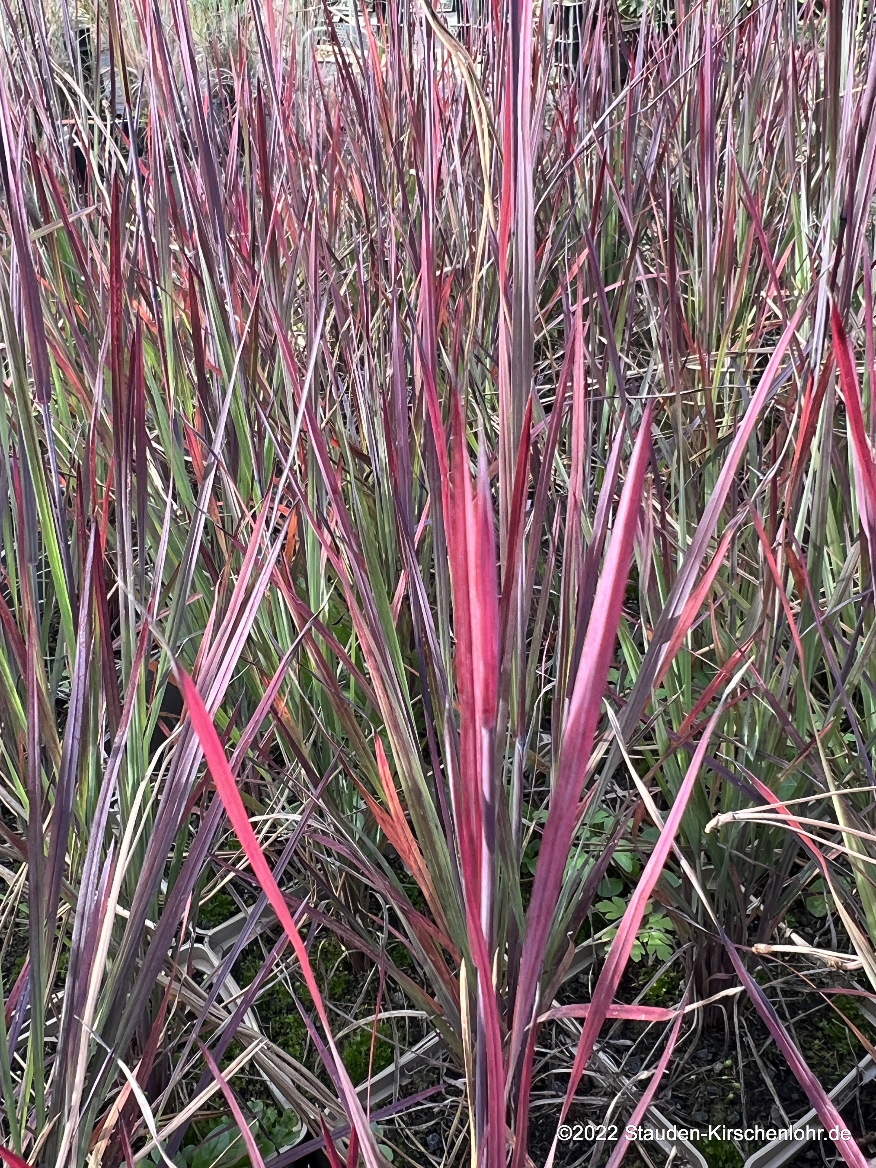 Feinhalmige, leicht nickende Blütenähren. Graublaues, riemenförmiges Laub. Färbt sich im Herbst traumhaft tief purpurfarben. Streng aufrechtwachsendes und horstiges Wuchsverhalten. syn. Andropogon scoparius 'S. S.'