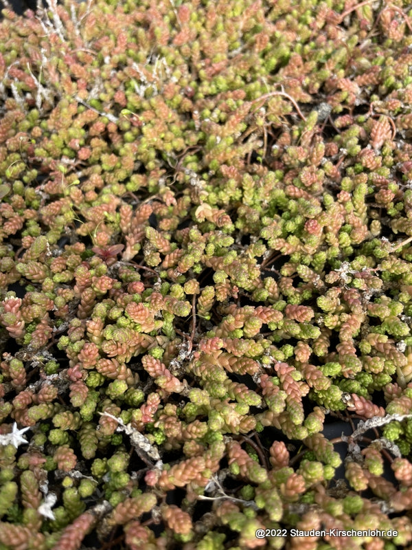 Gelbe, sternförmige Blüten. Die Blütenwirkung ist beachtlich. Kleine, walzenförmige, dicht beblättert, sukkulente, frischgrüne Triebe. Kurzlebig, versamt sich aber reichlich.