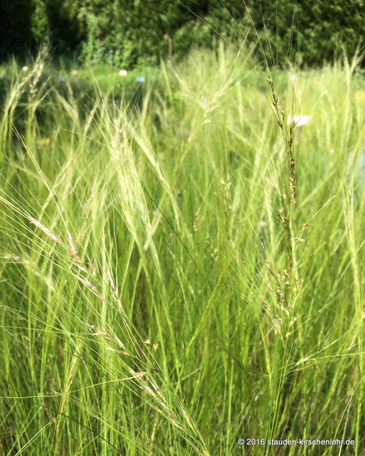 Kurze, fedrige, silbrig-grüne Grannen-Fruchtstände. Die Blüte ist klein, eher unscheinbar. Frischgrünes, lineales, nadeliges Laub. Wintergrün. Wenig bekannt; jedoch absolut zuverlässig!