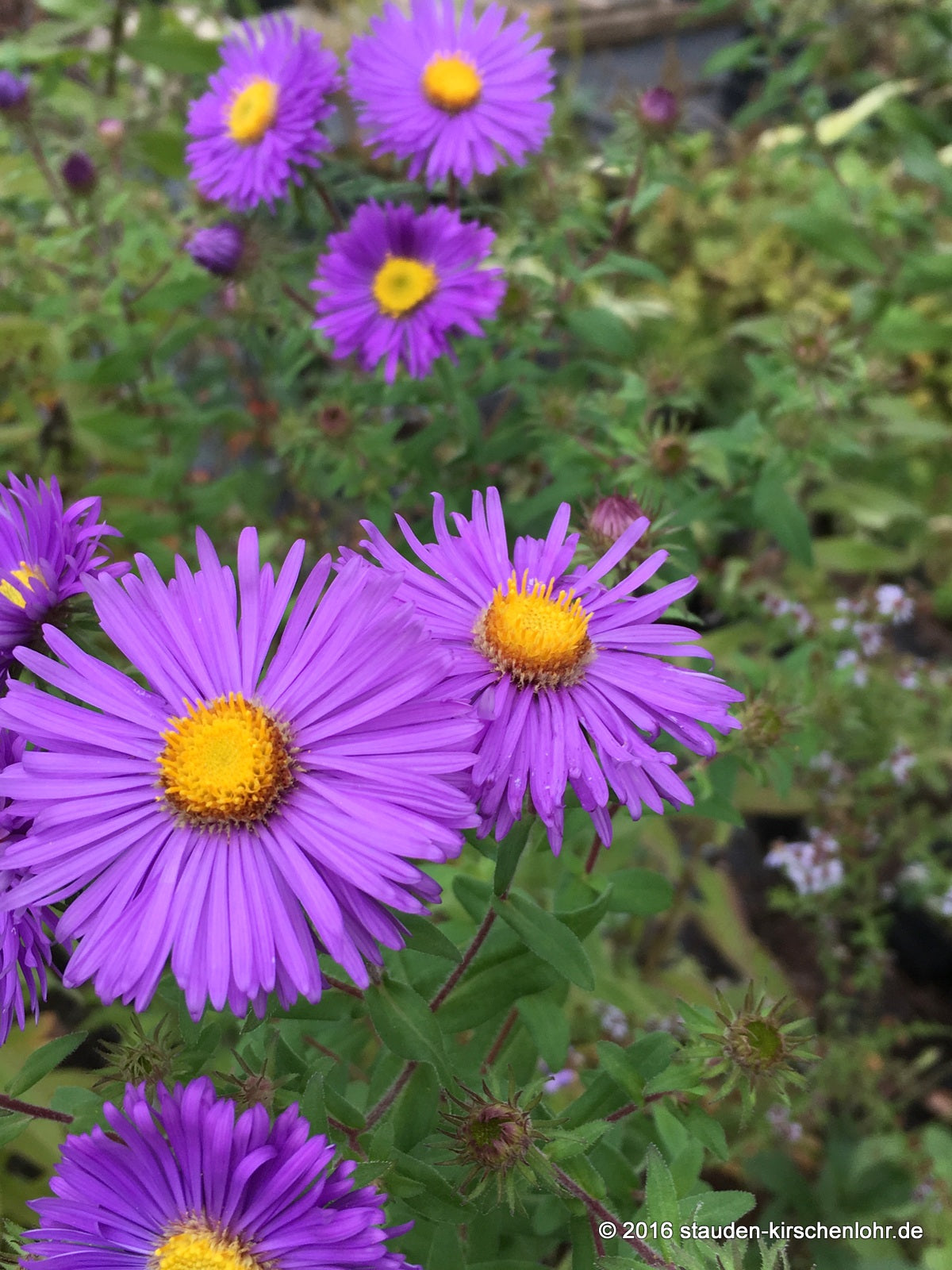 Große, einfache, blauviolette Strahlenblüten. Lanzettliches, fein behaartes Laub. Ihre relativ späte Blütezeit zeichnet diese klassische Schönheit aus. War bei der Sichtung die beste blauviolette Sorten. syn. Aster novae-angliae 'Barr´s Blue
