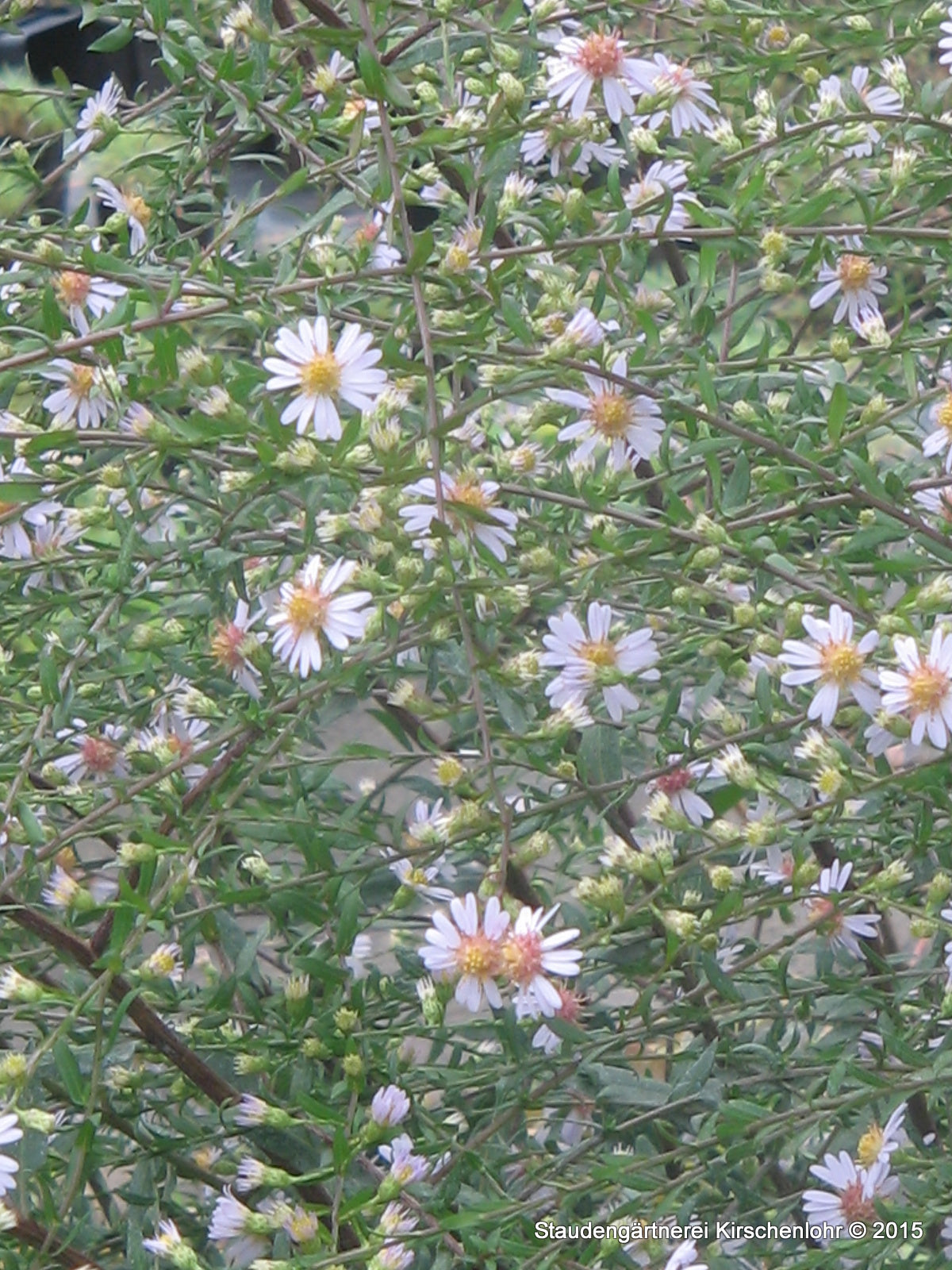 Ein Geschenk der Natur! Dieser Superstar ist absolut gesund und Standfest. Silbrigweiße Strahlenblüten an langen, kaskadenartigen Blütenzweigen. Lanzettliche Blätter. Sommergrün. syn. Aster 'Speyerer Herbstwooge' Die namhaftesten Planer verwenden diese wertvolle Pflanze immer wieder gerne.