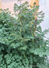 Hell-violette, sternförmig angeordneten Sepalen. Staubfäden gelblichweiß. Mehrteilige, gefiederte, gelappte Blätter, graugrün. Dunkle Stängel. Kreuzung zwischen T.rochebruneanum und T. flavum. Sommergrün.