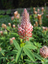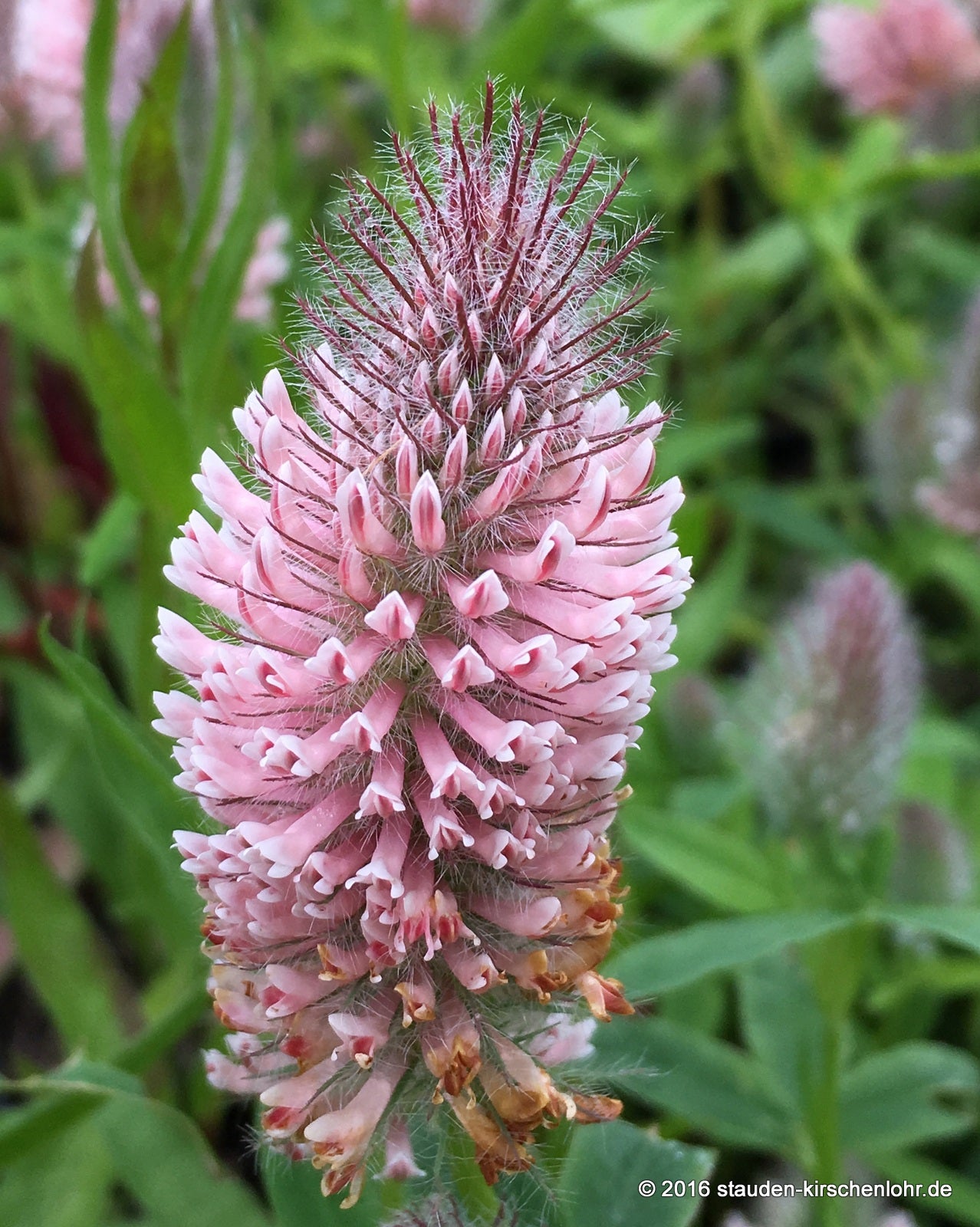 Blass lachsrosa Einzelblüten. Blüten in rundlichen Köpfchen. Dreiteilige, zusammengesetzte, lineallanzettliche bis elliptische Blätter. Sommergrün.