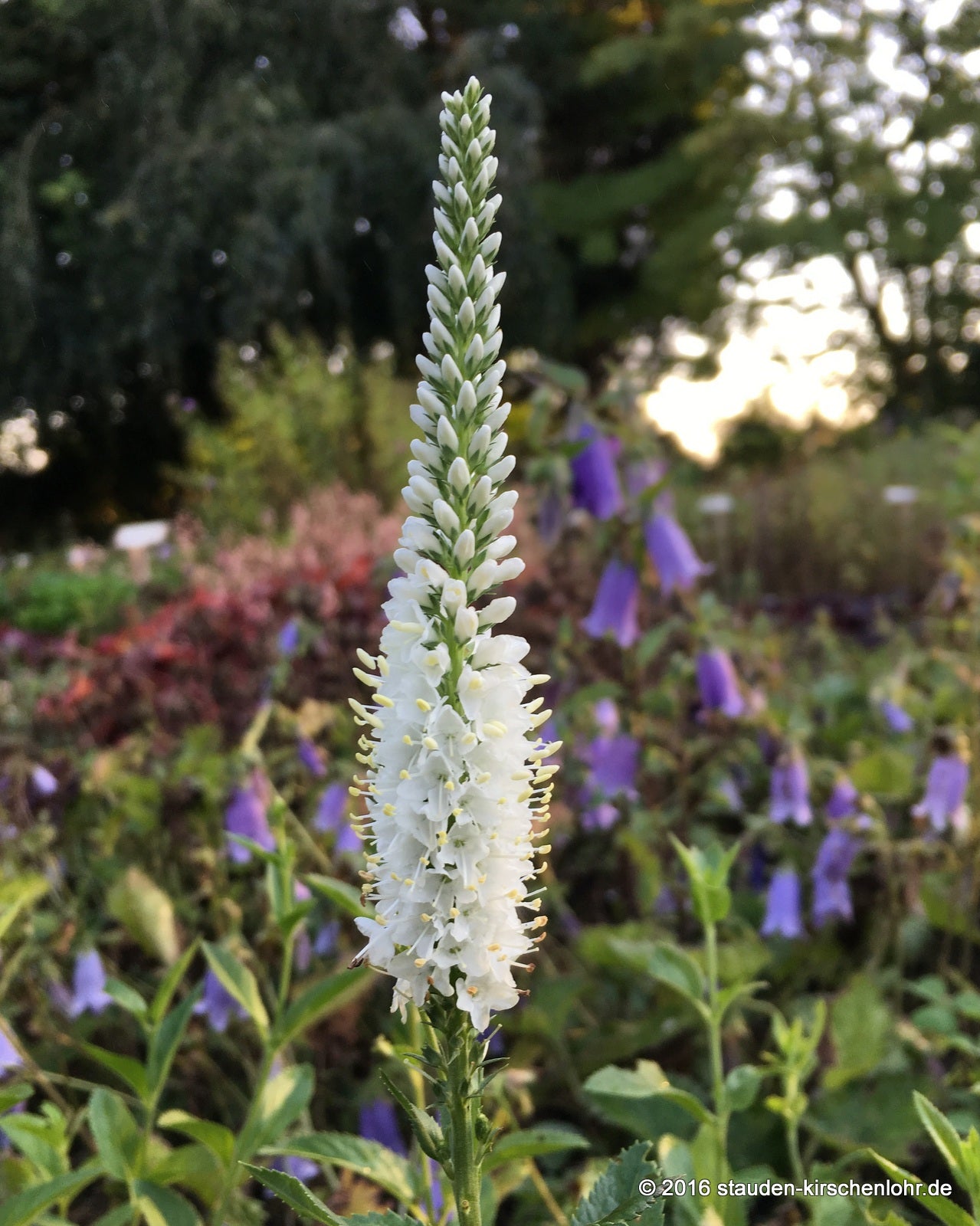 Reinweiße Blüten in aufrechten, dichten, traubigen Scheinähren. Lanzettliche, grüne Blätter mit gesägtem Blattrand. Wüchsige, aufrechtwachsende Staude. Sommergrün.