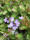 Hellblaue Blüten mit dunklerer aderung zum Zentrum. Traubiger Blütenstand. Elliptische Blätter mit gesägtem Blattrand. Wintergrün.
