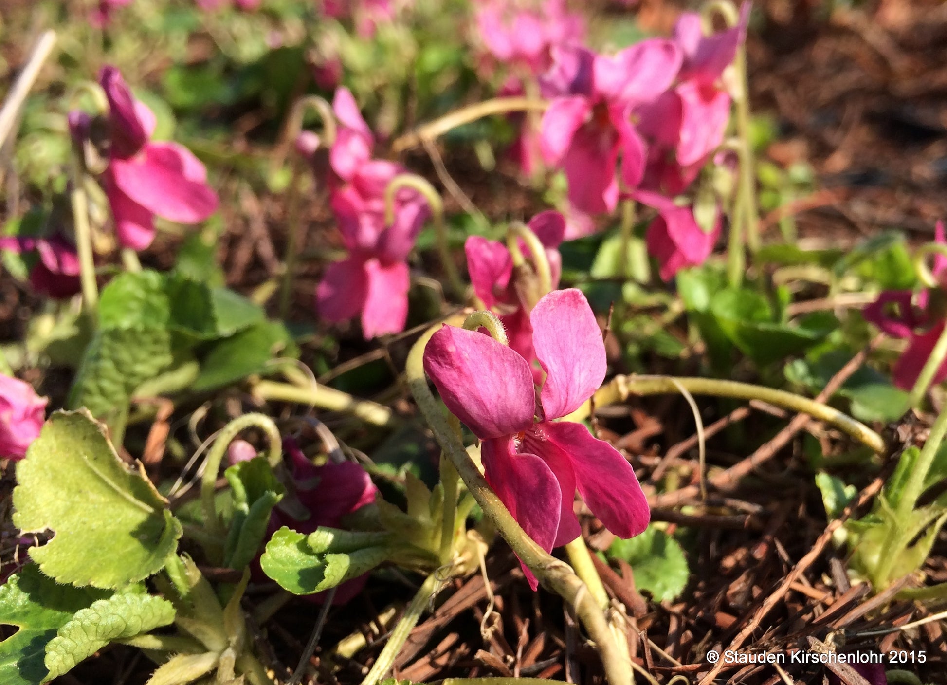 Kräftig karminrosa Blüten. Blätter rundlich bis nierenförmig breit eiförmig. Der Blattrand ist gekerbt. Wintergrün.